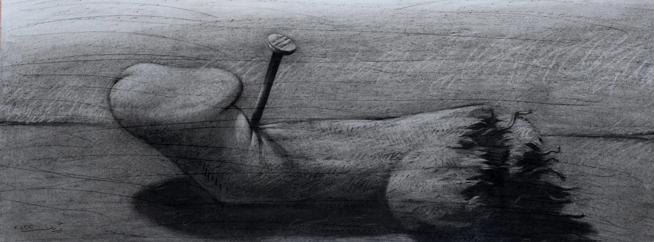 Fish and Nail. 2008. Charcoal on paper, 38x101cm.